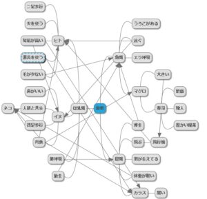これらの関係性を線で結ぶことで、「犬」という概念が他の概念とどのように関連しているかを視覚的に理解できます。