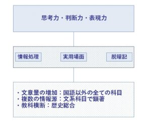 急激な社会変化→これまでにない新しい問題に自分で考えて対処する→実用場面を想定したり、その場で考える力が問われるように。